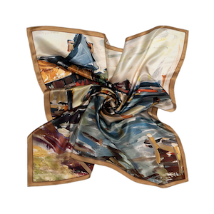 This silk square showcases the painting “Boat Pier” by Latvian master Vilhelms Purvītis. Soft, high-quality silk adds elegance and refinement to everyday outfits or special occasions.