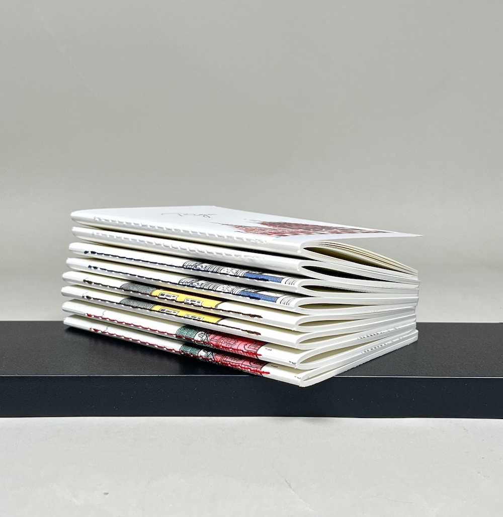 A pocket notebook with a drawing of Old Riga on the cover.
